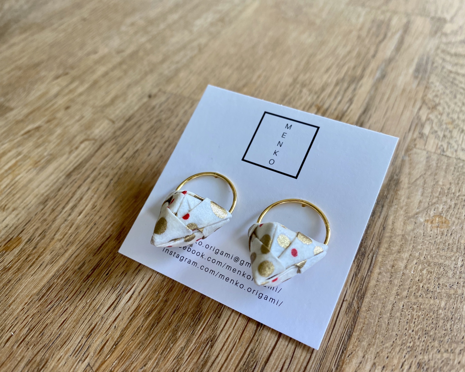 Brincos de espigão com argolas em prata e peças de origami modulares com papel japonês.