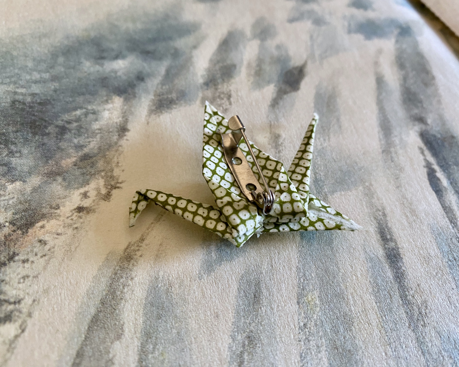 Pregadeira em forma de Tsuru feita em origami com papel japonês.