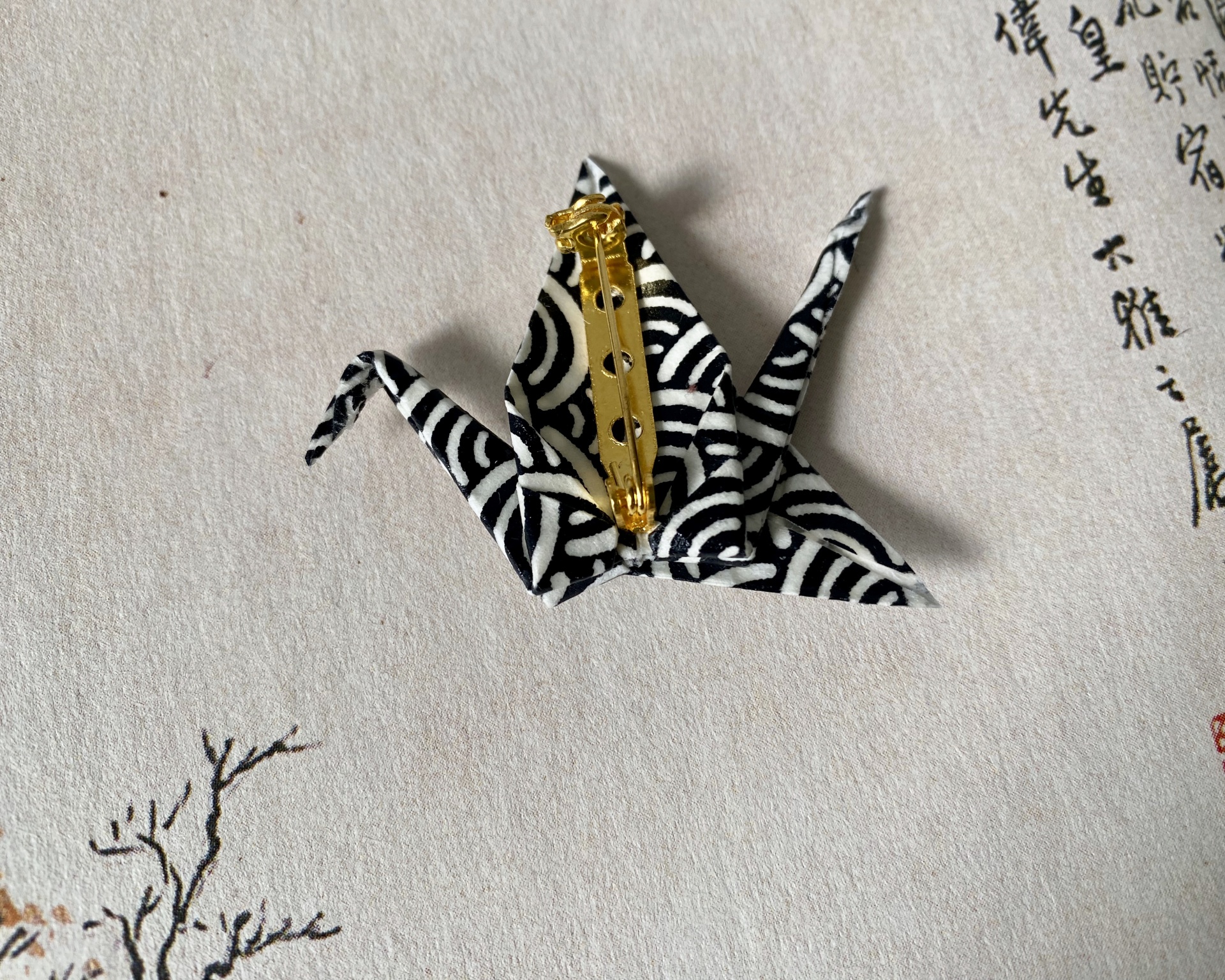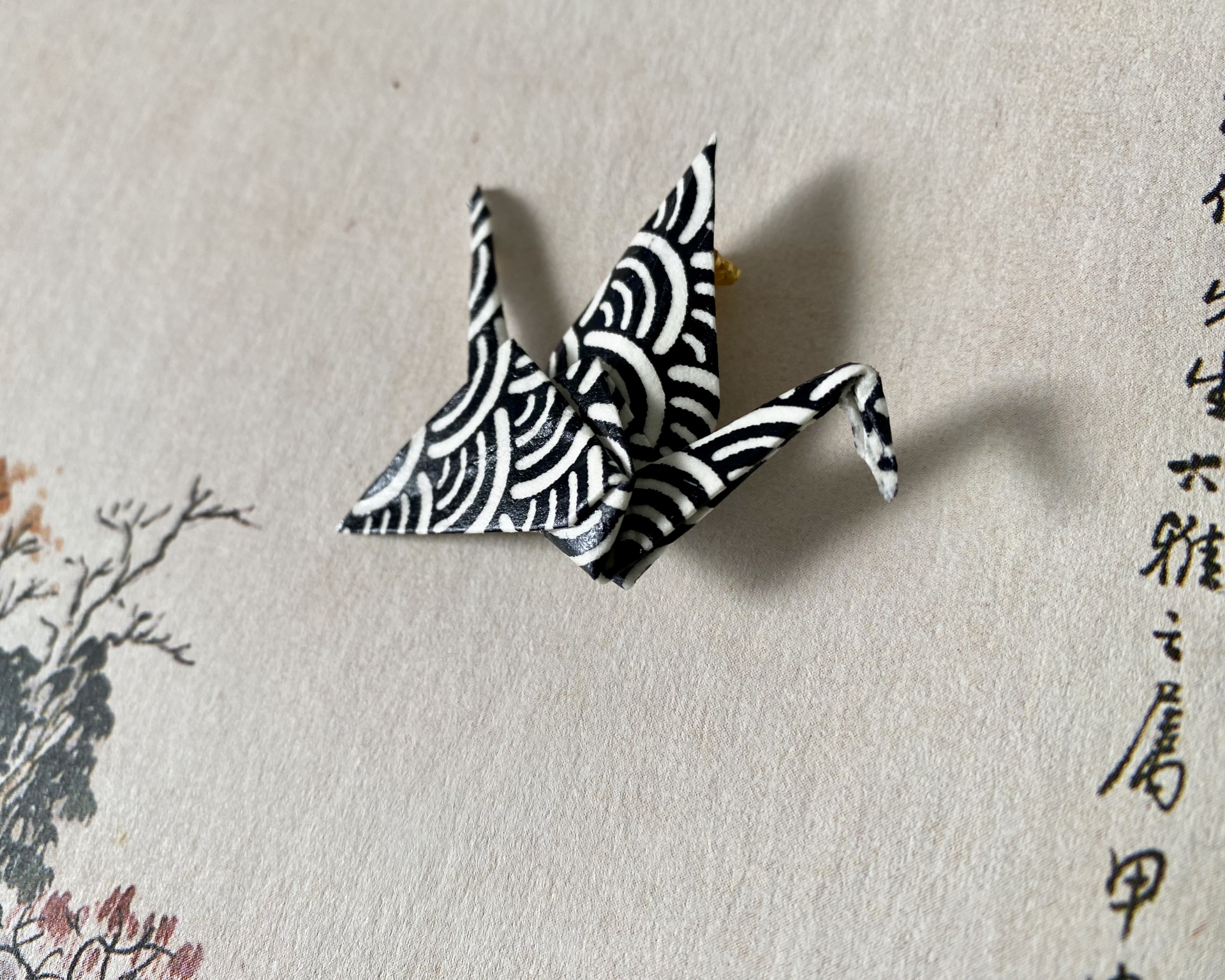Pregadeira em forma de Tsuru feita em origami com papel japonês.